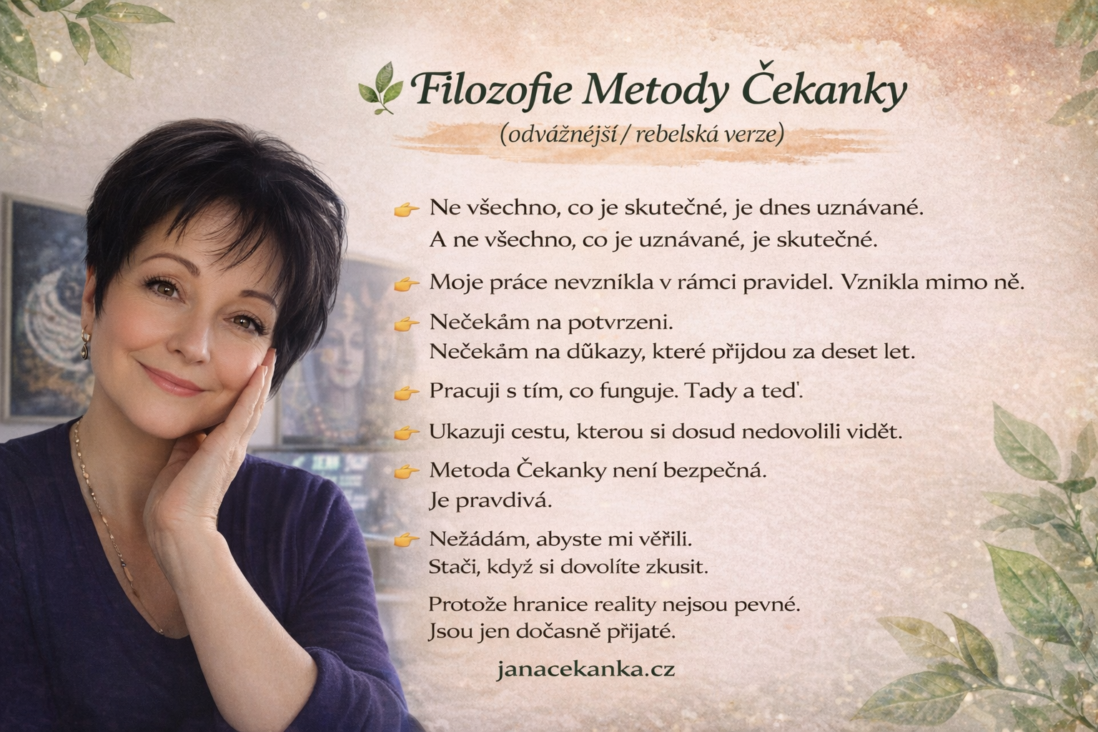 🌿 👉 "Nevedu lidi pryč z jejich reality. Pomáhám jim rozšířit ji."
